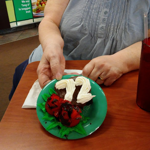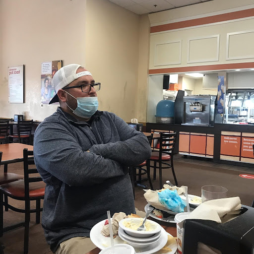 It doesnt seem as though they care whether the food is good or not. The carpet should be removed because it looks very nasty and the bathrooms are nasty. I was surprised to see someone (A worker) with a temp tester in the food testing its temp. Maybe they should change the grease more often. I dont know why we go everutime we are in town. I guess hoping it will get better but foe $35.00 for 2 people is not good for food that is not enjoyable. The oatmeal cookies were good but I didnt eat $35 worth.