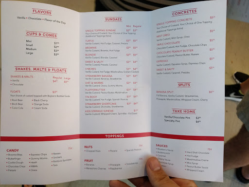 Very friendly service. Love how everyday is a different flavor! The custard is so good, and my chocolate malt actually tasted like a malt instead of just a chocolate shake like most places. :)