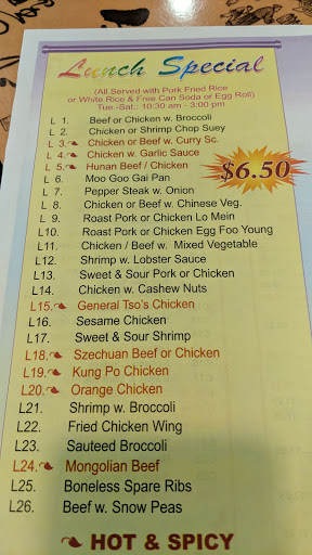 Good sized portions, great prices, and a variety of options. We really enjoy their sesame chicken as well as their hot and sour soup.