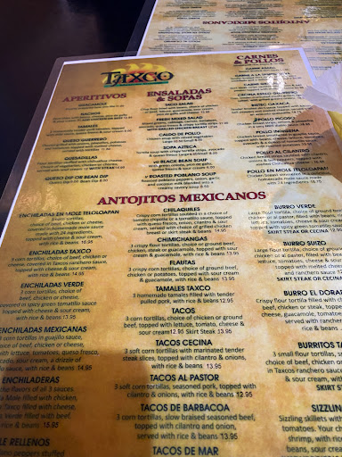 The best Mexican food from here to Arizona! We travel 25 miles to eat at Taxco and we have several Mexican restaurants within walking distance from our house. The owner frequently walks through the restaurant and if he thinks you need something, he doesnt look for the wait staff, he just takes care of you. Everyone has a smile and a grateful attitude. This is not a white table cloth restaurant! It is just Great food, Great people and a good value. My family of 5 eats here for $50.00 ($70 if my wife and I get drinks)