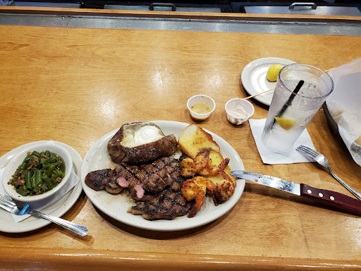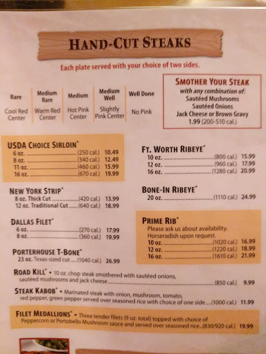 Love the food but today was my birthday and my daughter brought me here for my birthday. she had the chicken critters the breading was kind of dried out I had the 20 ounce ribeye steak medium well NOT rare it was only browned on the outside it was gross my daughter kept trying to flag down someone but ended up having to get up and take the steak to a waiter. Then when it came out when I first cut into it there was very little pink but figured they cant uncook it but as I was eating it it just got chewy and tough and as far as the free side it was French fries which I still had French fries but was not given a choice. The both across from us was really loud I dont mind noise but when you can not even have a conversation with the person across from you that is not decent I am sure the wait staff could hear them but no one asked them to quiet down so we had to listen to that and their cussing. People do take children their. The time before my daughters steak was way under done and it had to be sent back and she had ordered it well done. If we are going to pay 25 dollars for steak I might as well go by one and I can over cook it all by my self with out all the yelling and cussing. I know that medium well means a at least a strip of pink in the center not just a little brown on the out side. Deffinaftly will be looking into some place else to eat that is a lot of money for raw then over cooked steak that is tough and when my daughter sent her steak back she got a choice of side but yeah not a great birthday and she feels bad but it was not her fault. Also floor was really dirty and places that there was not carpet was slippery going out the door was a puddle of water or something.