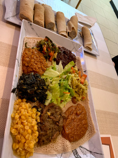 Ill start off by saying I know Ethiopian food. I think this restaurant has potential. The atmosphere could use a little work. The restaurant is quiet and might benefit from some soft background music. The portion sizes arent huge, and some of the dishes were slightly bland. The lamb tibbs were tasty- so kudos on that one. If I went back, Id probably stick with just the lamb tibbs. I didnt care for the vegetarian dishes. The injera was really good and seems as authentic as one can get in a midwestern restaurant. Authentic injera requires specific weather conditions present in Ethiopia/Africa to be truly genuine so altercations are made here in the states to ferment the injera batter to as closely replicate authentic as possible. I would say the restaurant should work on making the atmosphere more inviting and cozy, and working on making sure all dishes are flavorful. But its really nice to see another Ethiopian restaurant in town after the one downtown closed years ago. Oh and skip the baklava- it was weird, not very good and not worth the price. Ive never had baklava without some sort of pistachios/nuts, but for $3.50 you get two small pieces, one without nuts and one with. We just thought a mistake was made with the one without nuts, but they said no its supposed to be that way. Strange- maybe its an Ethiopian thing.
