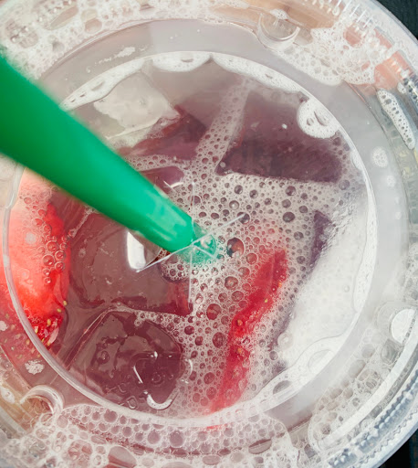ask them to clean their cups if you are allergic to strawberry. Generally a good spot if you can get inside to see whats going on.