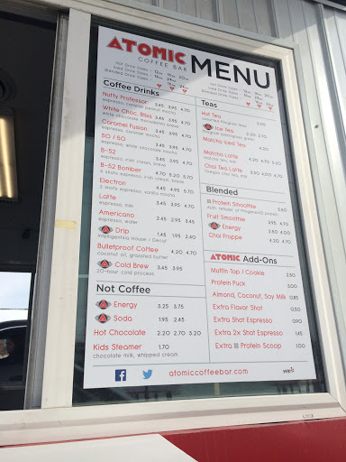 Amazing tasting coffee drinks! My daughter really enjoys the Atomic energy drinks. Id like to see them find a location where you can sit down or drive through.