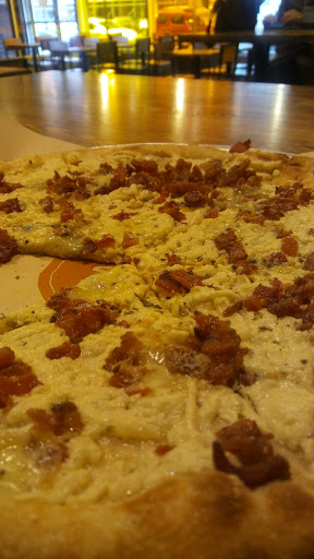 Went here while attending a convention at the convention center right down the road. A friend and I had time to kill so we stopped in to grab a quick bite. The establishment itself was clean and spacious and the staff did their job. The biggest drawback her was the pizza itself. First off you better come hungry as you can not order by the slice but only personal pizzas. We each got a different signature pie and neither of us even finished half. We both came to the same consensus that the pies were undercooked and overloaded with toppings. Some would say lots of toppings is a good thing and youre your moneys worth. But its not a positive when they are loaded up to the point where it comes out a soggy mess. We only came here because there was a very small line compared to the 45 min wait at miss shirleys a block over. At least now I know next time it is worth waiting and theres a reason one eatery was far more packed than the other. I landed on 2 stars because the place itself seemed nice but that doesnt matter when the food is subpar