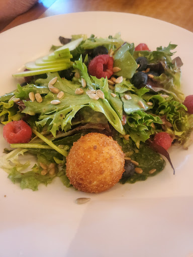 As much as I wanted to like this place, support a local business supporting other local businesses/farms, I was left completely disappointed. The place looks wonderful, nicely decorated, great restrooms and the menu looks wonderful. That is the end of the positive comments. When the hostess went to seat us in an almost empty dining room at 12 pm for lunch, she directed us to a 2-top right outside the kitchen. I could hear the staff and servers were going in and out. Not a good spot so I asked if we could have a larger table. She said they save their larger tables for bigger groups and she directed us to a 2-top away from the kitchen. Better but did not help my very tall husband. The waiter was pleasant but incorrectly described the buffalo chicken flatbread special. So, calamari was mediocre at best, crunchy but very little flavor. The sauce was a chunky unseasoned tomato sauce without any season and served with crushed red pepper sprinkled on top. My buffalo chicken flatbread was a great idea...flatbread topped with buffalo chicken, blue cheese crumbles, ranch dressing drizzle and julienne style celery but reality was over cooked, dry chicken with very little buffalo flavor, zero flavor blue cheese and so little ranch that I had to ask for a side of it. My husbands blackened chicken sandwich was lacking any flavor but again, great idea...blackened chicken, mayo, red onion, black beans and corn on a roll but what he got was a very sloppy dripping mess. There was no blackened taste at all. So the food was boring and not executed well at all but that is not the worst of our dining experience. On my way back from the restroom, I stopped by the hostess (sitting at a table on a laptop) and pointed out that we have finished our meal and still the place is empty, leading me to believe it would not have been a problem for her to honor our request for a larger table to accomodate my husband. It took everything in my not to laugh. The girl was so argumentative and rude. She actually suggested we make a reservation for a larger table...while the place was empty. I told her I understand her position and it is my normal process to call managers after a bad visit and I would be sure to let them know I disagreed with the small table policy and I went back to my seat. Less than 5 minutes later the manager comes over (older petite woman with blond hair) and said "I understand you were not happy with your table." We were shocked at her combative and condescending tone from that point on. She too said we should have made a reservation and continued to espouse the restaurant small table policy. She even went so far to say Mondays are normally slow...we were there on a Monday so all the more reason to let us pick our table. She did not seem to understand her comment only confimed my argument and not hers. She then went on to ask us about our food. I of course thought this was hysterical since we hated the food. She did not see to hear a word I was saying because she kept the same fake, plastic smile on her face the entire time (maybe that is what botox looks like). Anyhow, under no circumstances will be ever be going back to this place. It was a nightmare. I will say Ryan, our server was perfectly pleasant and attentive despite not knowing exactly how the special was prepared.