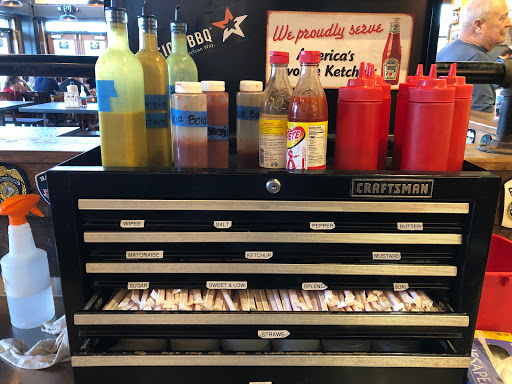 Let me start by saying that the customer service was good. The place is really clean and it is spacious. The food is ok. Definitely not the best BBQ i ever had. Its eatible. The were two things i dint like. Thats why i took two stars. 1. For a place that shows so much military stuff. Like saying "we love our military", there is no military discount. Not even a free drink. So for me is like they are using the military slogan to bring military supporters and military folks like myself. 2. This one is more of a personal thing. I really dont like people hovering over me. The staff that work there, although they are very friendly, try too hard to serve. For example, the wife and i were eating and this worker was just hovering over us asking to get out trays, serve us more drinks, get us things. Thats not a problem if the server is not HOVERING over the customer asking us every couple of minutes.