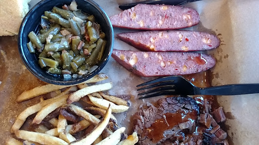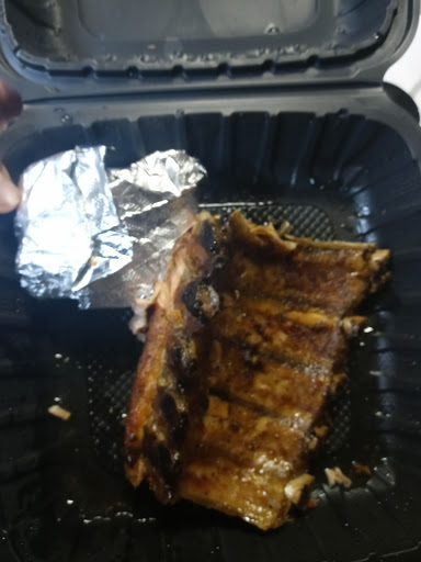 The meat was tender but had no smoke flavor or flavor at all. Except for the texture you could not tell the difference between pork, chicken,beef or the ribs. Good meat should not have to be drown in sauce to have flavor. I had to wait for my meal while the guy was snacking behind the counter and swallowed, which he didnt. Not impressed at all