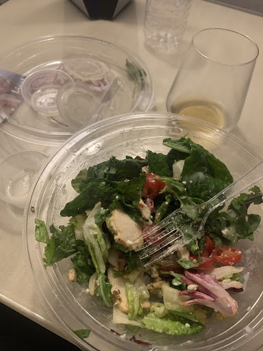 Ordered a chicken ceasar kale/romain salad (pick 2) through the quick pick-up. My soup was perfectly fine. My salad was a kale and parm salad.....no romain and no CHICKEN.