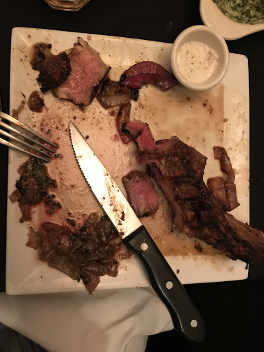 Summary: RUDE MatreD, mediocre service. Good steaks at a high price. We had reservations for 12 at 6:00 with a hard stop for 8:00 (most of us were attending the concert where one of us was performing...) Thanks to multiple accidents on the Beltway, we straggled in between 6:10 and 6:30. The MatreD refused to seat us until everyone was there, so we ended up milling around (even though the table was all set up and ready for us.) When the last person straggled in, the MatreD told us he wouldnt guarantee we would be done in time. We ordered in a hurry, and the performer (easy to pick out in his tux :-) asked that his meal be delivered as soon as possible. Despite that request, everything came out at the same time. He ate and bolted, and the rest of us followed soon afterwards. To his credit, the chef did come out and check that we got our meals on time; the rest of the staff couldnt care lesss. The steaks were good, but frankly not $30 good. The sauce on the salmon was way too salty. The salads were very small for the price, and the family-style sides were good, but again not particularly generous. At 7:00 on a Saturday, they were out of the special and several desserts. That shows bad planning. This was not a $50/person experience.