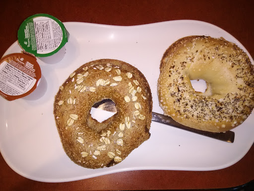 Too crowded every time I tried to be here. But I recently got to enjoy being here without waiting in line at all. It was pretty quiet. So I was happy to order some bagels. Yet this person behind the counter didnt seem to care much about her customers. She would just put a huge bag of bagels in your hands, knowing that youre holding a hot cup of coffee. Youve tried to refuse by being slow to receive the bag, but she wouldnt stop putting it on you until you spill some coffee on your hands. This didnt happened to me. But it happened to another customer in line. Believe it or not, the person behind the counter didnt even apologize to the poor customer; she didnt seem to care at all. And she didnt do a good job taking my order either. The person who was actually getting my bagels made me repeat myself 2-3 times as if hes newly taking my order. I already told the other lady behind the counter the specifics (e.g., have all my bagels sliced, which cream cheese I want, etc.). I couldnt understand why I needed to repeat my order to someone else. Then I realized that many people are waiting in line. No wonder fast service cant be achieved without being able to take order efficiently.