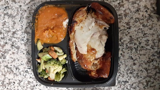 Good chicken and sweat potatoes sometimes the chicken is very salty overall good