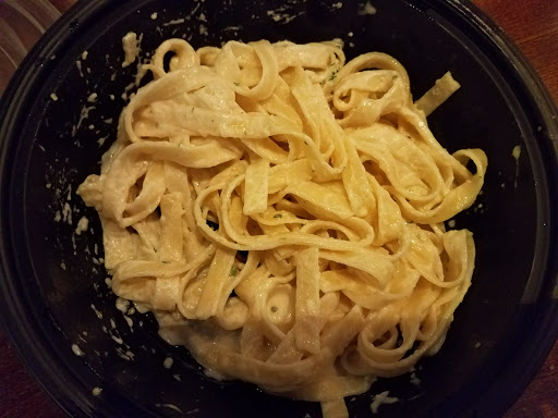 Super Bowl Sunday and no wait at about 3pm. Seated right away. Booth was too low and they accommodated by moving us to a table. Server was efficient. Kitchen was slow plating a refill for my endless pasta meal. My table had chicken parm, lasagna, fettucini alfredo, zuppa toscana and salad. All delicious. Ordered a to go half-gallon of soup. Server knew nothing about that type of order. Might be good to cross-train staff. The 2 employees at the take out counter did a fine job boxing up my soup and making sure I received the ladle and cheese packets. Another employee held both doors open as we left the restaurant. Customer service is good here.
