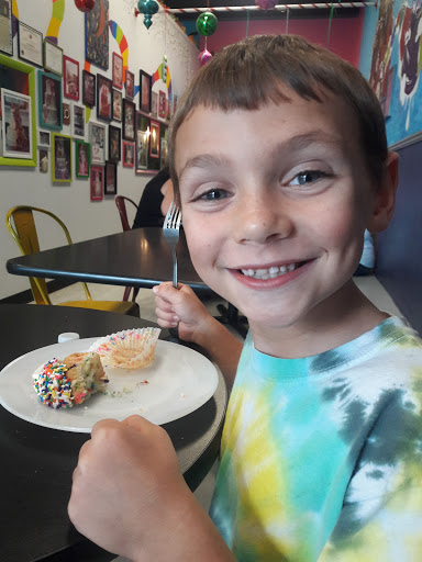 I was drawn in for an impromptu mutual birthday celebration with two friends due to the cupcake offerings available. Prior to the bakerys two appearances on Food Networks Cupcake Wars, there was possibly a wider variety of baked goods, but now the focus seems to be on cupcakes. (I do miss the mousse log, and hope it will make a return eventually.) We tried almost every cupcake flavor available (it was a weekend in October), and were not disappointed! Our highest ranked cupcakes were the Pumpkin with Maple Icing, Amaretto Chai (the spice blend made me feel as if I were eating fluffy clouds, not a cupcake - a good thing, in my opinion), Apple Crumb with Salted Caramel Icing, and one of the large stuffed cupcakes - the Total Eclipse, which is not for the faint of heart or avoider of chocolate. The atmosphere is fun and funky, the wall art is amazing, and the cupcakes are very good. Prices are reasonable, and the overall vibe is relaxing. Coffees and teas are available for consumption alongside the bakery options, as are a select number of café sandwiches. Check it out, give it a try, and support local businesses.