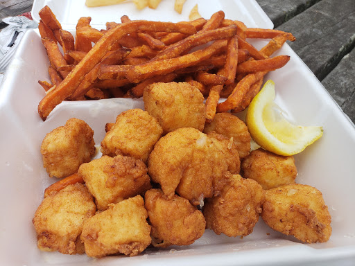 Whether its the scallops, shrimp, cajun shrimp and crab roll, or swordfish, Ive always been pleased with the quality of seafood. Most dishes are served with fries, cole slaw, and one of their sauces. The fries arent great but the cole slaw and tartar sauce are. They have a nice outdoor patio thats open during fair whether. Otherwise, Ill order take out, as indoors is cramped and only has a few tables. If you have the opportunity, definitely try it!