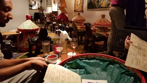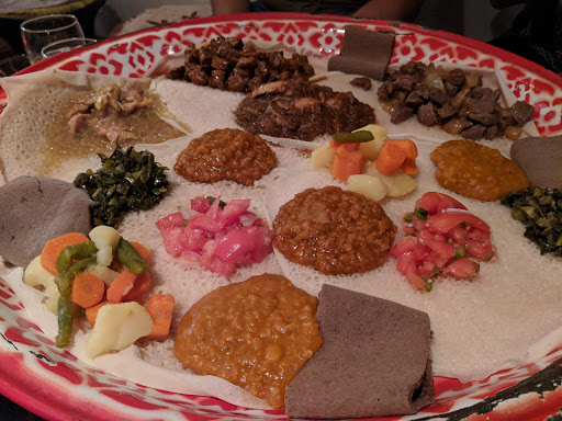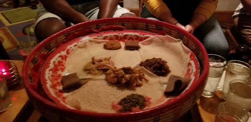Very disappointed. Ive been to one of the best Ethiopian restaurants: The Blue Nile in Berkeley, CA. Ive also been to many in the Fairfax district in Los Angeles. I live in Boston now, and wanted some great Ethiopian food so I gave this a try. Dont waste your time. This is some of the most bland food Ive ever tasted from ANY restaurant. Its almost like they are not adding spices anymore in the bad economy, to save expenses. My grandmothers dish was served cold, literally cold. I know it wasnt supposed to BE cold because I got the same thing in the vegetarian sampler and mine was warm. The chicken dishes are so bland and thoroughly unappetizing I felt sorry for the place. There was ZERO seasoning of any kind. Just torn up pieces of dark meat and gristle with some wet looking tasteless "sauce". I could have made something tastier at home. The vegetarian dishes were boring, collard greens needed some extra umph, lentils barely had any flavor and no sauce to them at all, just a pile of lentils. The cracked wheat was just okay. The "chickpeas" were a cold crumbly mess of what looked like hardened cottage cheese. I thought I was getting chickpeas? The chairs were way too hard, and the food took too long to get to us. The only good thing was that we found a parking space right outside the front door (parking on the side streets is allowed only by permit). Anyway, I will not be returning to this restaurant. THOROUGHLY disappointed. And to think we drove into the city for this!