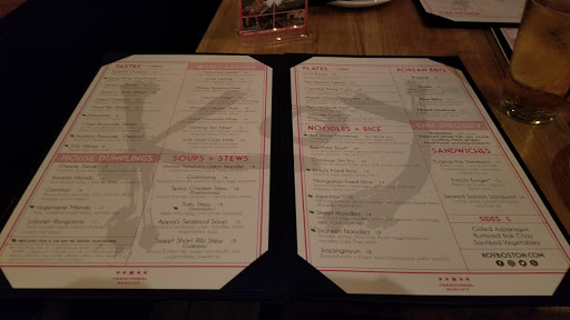 WOW! My fiance has been wanting to try Koy since it opened, so a few of us popped in on a Thursday night. The place has a nice vibe with modern decor. We sat at a high top in the bar area. Patrick the bartender AND 2014 Boston Magazines Mixologist winner was very knowledgeable of not only the cocktails, of course, but the menu and Korean style food. If you like tequila they infuse their own with Thai Chilies for up to 7 days... WOOHOO! Patrick was very accommodating answering all of our questions about the food... yes we were THOSE people. We ordered the cheese stake dumplings because come on you cant pass that up, those were delicious! A couple of us shared the hot stone bibmbap which was AMAZING! and plenty of food for two. The Japchae was awesome as well. Dan the owner stopped by to chat with us, he is great! He shared how we should eat the food and also recommended a traditional dessert that he loves, the patbingsu... everything from red beans to gummie bears and fruit are included in this shaved ice, icecream sweet treat. Its huge so share it. The service was terrific we felt welcome and taken care of, the food is delicious and the vibe is fun! Ask to chat with Dan or Patrick they will treat you right!