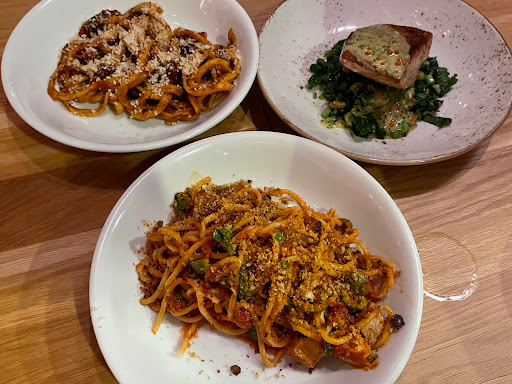 Food, atmosphere and drinks are all amazing. Ive been several times since the opening and had great experiences. The food is fresh and flavorful, perfect portion sizes as well. Both times we got several apps to share with the table, and then our own meals - which are enough to feel full, but not over-stuffed. Some menu favorites are the Arancini, Mida Pickles, Caponata Toast, Gnocchi, Duck Confit Orecchiette (FAV!). Definitely will be back for more, great place to go with friends, drinks after work, date night, etc.!
