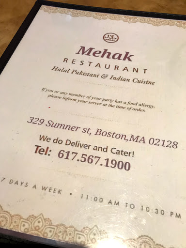 This is by far the best Pakistani food Ive ever had. Before you take my word for it let me start you off with some background. My wife, who is Pakistani and is from Lahore, and I love Pakistani dishes! Indian food is great too (yes there is a difference) but Pakistani food is purely delicious. We recently moved to Boston and have been trying out different restaurants around town to add to our extensive experience with the cuisine. We mostly found Indian restaurants, which are great, but Pakistani food just tastes better. For any newcomers to south-Asian cooking, youre probably used to hearing about Indian food. Pakistani food is almost identical so dont be afraid to venture. So on this day we were looking for exceptional Nehari. After searching Google Maps, Mehak was the only restaurant that appeared to be Pakistani, and the only one with 5 stars! So we decided to take the 30 minute train ride to eat. I have to tell you, the food was mouthwateringly good! It was the perfect blend of tastes and spices. It melted in your mouth when you wanted it to and kept you wanting more! The owner was extremely nice, the most accommodating restaurants Ive ever been to. It felt as if he was serving us in his home as his guests. My wife and I left Mehak completely full and satisfied. We got our Nehari and THREE orders of naan; keema, garlic, and regular, for only $20.34! We were so excited that we gave them a large tip. Needless to say, we are absolutely going back, we would like to go everyday but we would eat way too much. We are planning to go back at least once a month, hopefully once a week. We thank you Mehak for giving us the best Pakistani (or Indian) food weve had in America by far! We hope you luck with your business and we will try to spread the word as much as possible, see you soon! I also posted this review on YELP! a few minutes ago. Sorry, didnt want to forget anything.