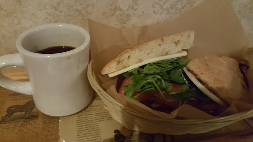 Awesome place to grab a coffee, tea, or light lunch! The atmosphere was busy and the food was delicious. They even have gluten-free bread and pastries! My mother and I ordered the same sandwich and I wasnt charged extra for the gf - a nice change from being charged an arm and a leg for different bread! Fun decor, friendly staff.