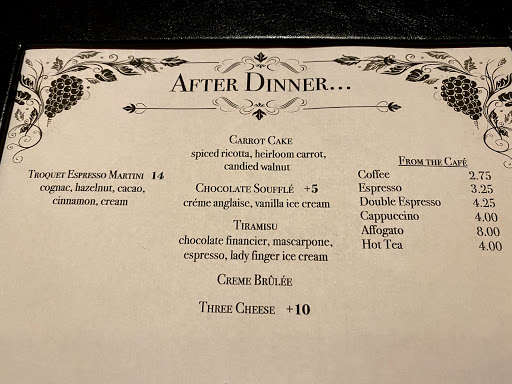 I keep saying Im not a fan of French food, but occasionally, there are exceptions. Troquet is one of them. The Lady of the Table and I dropped by this fancy schmancy restaurant on a Wednesday night. The lower level was empty, but the second floor was about three quarters of capacity. The decor is simple and nothing gratuitous stood out. We ended up going for the 8 (?) course tasting menu, which included a cheese plate and two desserts at the end. I dont want to spoil the surprises by telling you all the phenomenal dishes we had, but our dinner at Troquet was not without flaws. The food started out great, with beef and lamb so tender that even I, a not-so-big fan of red meat, ate them and wanted more. However, as the evening went on, the quality of the food kind of took a roller coaster ride. At times it was good, while other times it was curious as to what the kitchen was thinking. Service was kind of good, and kind of weird. Our experiences with the waiter was awkward, to say the least. He didnt seem to know the menu very well either, which could had been fine had he also not been touching our cheese with his hands (yes, I know that may come off a bit snobby - but thats not my intention). Similar to the quality of the food, our service was another amusement ride. Sometimes the dishes would be cleared and the next round would be brought out immediately. However, as the night progressed, the wait became longer and longer. Since we closed them out though, it didnt take long for the check to come so everyone could go home to a good nights rest.