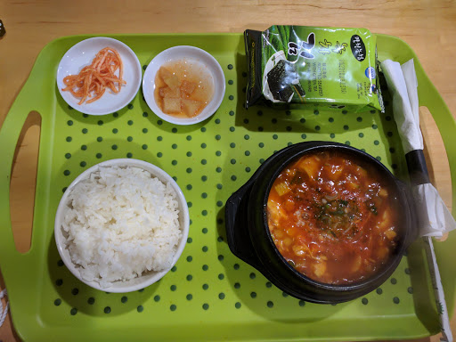 This place is my favorite local restaurant for a quick lunch or dinner takeout. Their kimchi tastes much fresher than anything you can get at H-mart, and theyll sell you a quart if you ask. I always end up ordering the spicy kimchi jigae, which is great medicine if you have a persistent cold. The side dishes served with the meals are also delightful, providing a good selection of pickled vegetables.