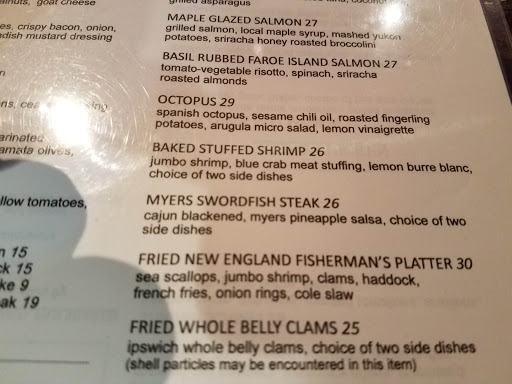 My husband and I have been to this restaurant twice and both times we had delicious dinners. The place is very comfortable and they now have additional seating and a bar. We always have fish (the actually have a great fish market as well as the restaurant) as that is what it is all about. Our last visit I had a fried shrimp dinner with baked potato and coleslaw. My husband had a fried clam dinner with garlic mashed. We made our own swaps and enjoyed clams and shrimp for both of us. Batter is great and the shrimp was really excellent. I thought the clams were chewy. Nice to not always have french fries. We asked if there were any other options and she listed off a few to our surprise. Dont be afraid to ask for something if you dont see it on the menu - they will often be able to accommodate you. The shrimp wasnt on the memo that night but it was available. Apparently not enough to place it on the menu for the night. Smart! I hate to order something and the restaurant doesnt have it. Doesnt seem to be that way at Fishbones. Desserts look incredible but we have been so full each time that we have nott tried anything yet. I have recommended this place to a number of friends and they all like it very much. Nice outdoor patio - Parking is behind the building. Tricky to find. Take a right immediately after the Stop & Shop parking lot (see white house).