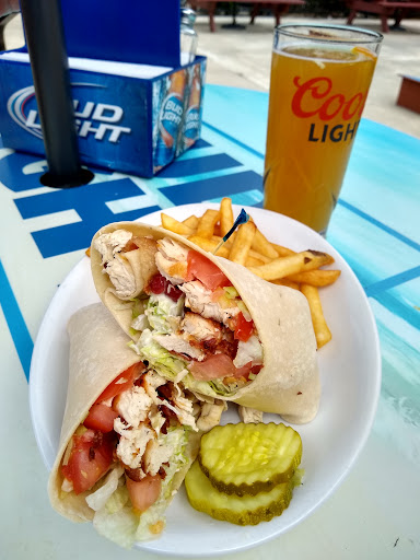 Great atmosphere. Love that there is cornhole (baggo) or back behind the patio. Great view of the lake and fun place to hang out during the summer.