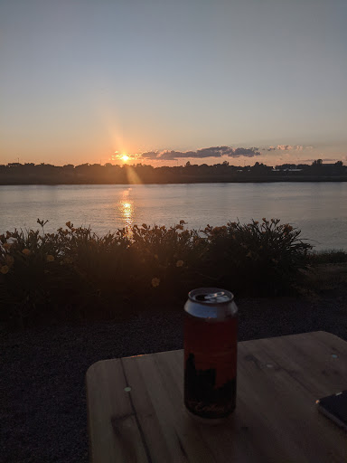 The deck has beautiful views of the river, nice for a good weather day or for watching the sunset. Comfortable. No one rushed us. The food was nice. The service was okay, a little sparse. Our wait person was very concerned about my food allergy, which was nice. Bathrooms are inside the hotel. Because it is outside, people do smoke in an area nearby. Good, low key place to hang out or have dinner on a beautiful day or evening.