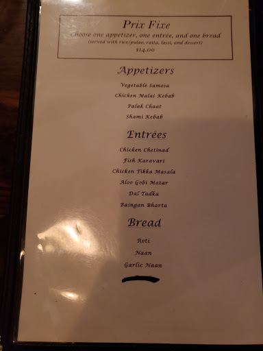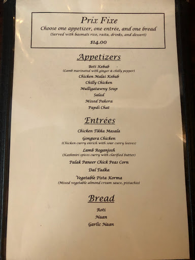 Wow!!! Found a new restaurant in nyc. I was there for lunch. The place was welcoming. The service was excellent. I orderded the prix fix... Oh the food was appetizing. They served mango lassi at first it was very good. Then got the kebab it was perfectly cooked. The tikka masala was amazing. At last i wanted the check but then gave me a desert white chocolate rasmalai. All this food for just $14 is worth it. I would be going there frequently.