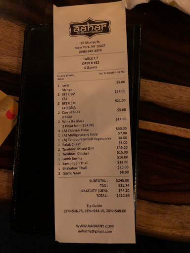 Aahar is very nice place for Indian food dinning experience in NYC financial district 5 minute walk from WTC memorial. Ambience and sitting arrangement is excellent. food quality and pricing is reasonable. 1st time i ever seen very attentive , customer service oriented and attention to details. me and my friend had 3 course set meal on 13th October ,which is highly recommend also they have buffet choice too. my special Thanks to manager and all team members at Aaahar. i will definitely visit you guys again.