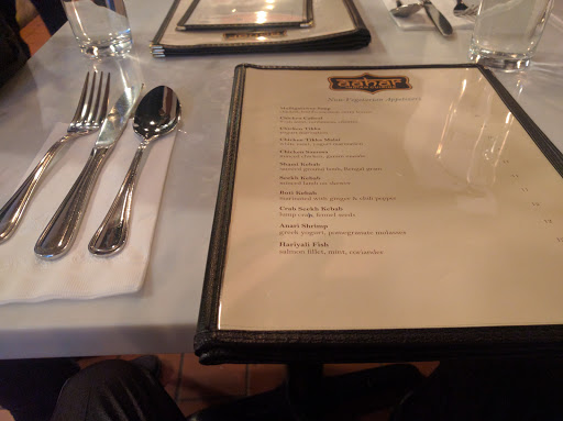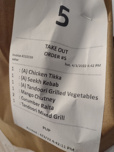 I live across the street from Aahar and was so happy when it opened recently. Fantastic food and very kid friendly (I have two daughters under the age of two.) Ive also had takeout from Aahar and the food was excellent as well. Id recommend everything Ive ordered from Aahar, including: - Garlic Naan - Shami Kebab - Tandoori Grilled Vegetables - Squash Kofta - Chicken Tikka Masala - Chicken Chetinad - Mango Firni Cant wait to dine here again soon!