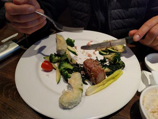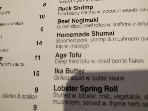 Good sized menu for a small place, includes some interesting rolls and dishes. I had the Saikyo Miso salmon, and it was good! Clean, but small and therefore noisy. Go for the food, not the ambiance.