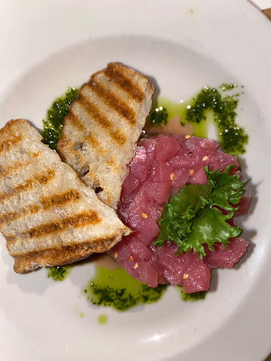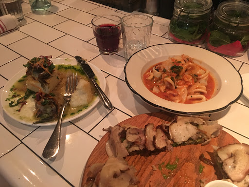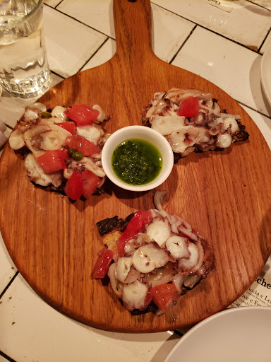 Aria showcases a wine list curated by women winemakers, traditional Venetian small plates also known "cicchetti", and vintage cocktails. The decor in the cozy, intimate space in West Village consists of polished white tiles, exposed brick, and a few rustic wooden communal tables. Because the restaurant is small and often packed for dinner, its not too unusual to find yourself raising your voice through the night. Overheard from the bar, the bartender asks "White or red?" while a lady in her mid-20s chimes, "I prefer white to red so it doesnt stain my lips." Theres a variety of options on the smartly tailored menu for people with varying palate predilections. The appetizers are good, particularly the burrata and prosciutto with tomato and drizzled with balsamic. However, the small plates at Aria definitely take the spotlight - tender lamb chops cooked to a perfect medium-rare and octopus crostinis with a heaping mound of octopus haphazardly tumbling off the crust. The ingredients really work together to create a delightful experience of flavors, although the crust of the crostini is slightly more abrasive than preferred. For dessert, the tiramisu instantly materialized into what can best be described as "heaven" as a very generous cube of marscapone atop a kahlua-drenched cake arrived at the table, dusted with ample amounts of cocoa and powdered sugar. Plates: $9-16 Wine by the glass: $6+