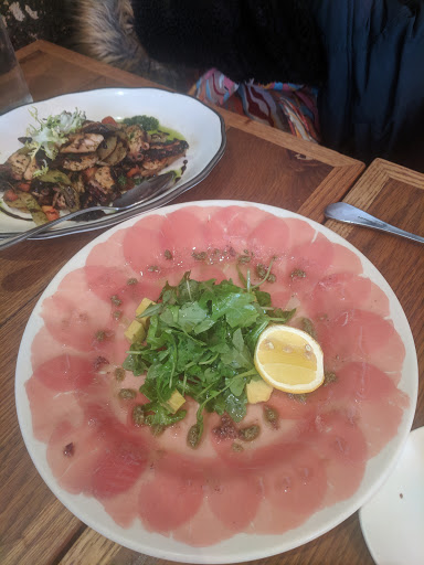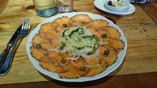 Poor Service & Dangerous for People with Food Allergies The ambiance is nice (though its a little loud and maybe a bit too dark), but the service and management are really bad. I have a severe nut allergy. We ordered a cheese plate, which had nuts all over the cheese, and I explained that I couldnt eat it. The waiter asked, "You dont want nuts?", and then took his animal-like paw to move all the nuts off the cheese and onto the board. Aside from the fact that he was touching our food with his hands (gross!-- like we would want to eat the cheese anyway after that), he clearly hand no understanding of allergies. (Honestly, you pretty much have to have never read a single newspaper to not have heard about nut allergies before.) I explained that I couldnt eat it, so he brought out a "new" cheese board. I stupidly trusted him and took one bite of it and immediately had a horrible allergic reaction which nearly landed me in the hospital. Even if you dont have food allergies, its nasty-- waiters should never touch your food. Beside the fact that they basically poisoned me, its a sign that they have no training, no standards, and no real management. Stay away.