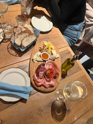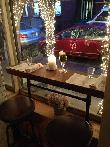 I dont think I can say enough about this place. I have been here twice now, and both times were fantastic. The only reason it does not get 5 stars is because it can be a little unorganized in their seating process. They do not take reservations for small groups, and will leave an entire table open while they wait for a reservation that isnt supposed to come for another hour. However, their food and atmosphere makes up for that! Aria has a great menu of Italian dishes and a greats selection of wine. The ambiance is cozy with a definite Italian flare. There is one large communal table and a few smaller tables. There is also a bar that runs the length of this small restaurant that is also a great choice to sit at. The waiters all know the menu very well and can make educated suggestions about both the food and the wine. From the moment you walk past the charming Christmas lights that decorate the outside of this west village gem, and through the doors, you feel like you have just entered a special place. The last time I was there, my friends and I ordered wine, a cheese and meat charcuterie option, a beet salad with goat cheese and a phenomenal small plate that was some type of eggplant with ricotta and marinara sauce. The Montepulciano dAbruzzo wine was a terrific option to go with the meal. I really cant speak highly enough about this place, and I am looking forward to going back and working my way through their menu.