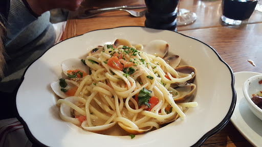 The "vegetable lasagna" at Aria wins my personal booby prize for the single worst pasta dish Ive ever had--overcooked, over-cheesy, vegetable-less glop that doesnt deserve an Italian name. And all that for only $12! The octopus in the octopus salad was overcooked also. Our waiter, who looked like an understudy for Colonel Clink on Hogans Heroes (but with less personality than your average Gestapo agent), barely addressed us and was almost impossible to pry away from his companions. Whatever he said wasnt audible anyway, since the "music" was blasting the whole time; perhaps thats why he felt compelled to scribble on our menu instead of describing the special plates as a normal waiter would. Buy a decent bottle of wine and some pasta and sauce, cook it yourself, and save yourself and your friends $50! Ugh!