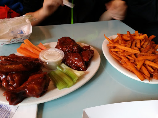 Went with my son after the auto show. He loves wings and so we were excited to try this place. We got the Chipotle bbq sauce on the half half wings/boneless. We got a side of sweet potato fries too. Everything was very good. The sauce was tangy and had mild heat. My son even complimented the carrots! The fries were excellent, perfectly done with just enough crispiness. The server/cashier was very friendly and brought our food to us. So why not 5? A few minor quibbles. The decor is a bit grungy - but thats not the problem. Hey its Hells Kitchen! The tables were a bit in disarray and not wiped down. Also, they make the food to order (I assume since everyone who stayed had a slight wait), but the food that came out was not piping hot! Both the fries and the wings were warm so its not like one was waiting for the other. But my son and I enjoyed the food very much. Its one of the remaining vestiges of the old Hells Kitchen transforming to Clinton. Character.