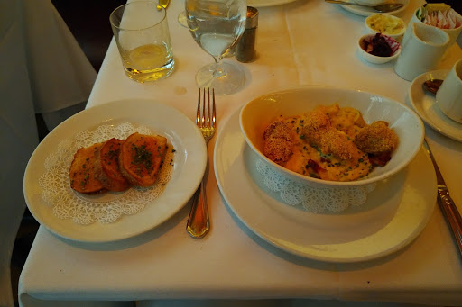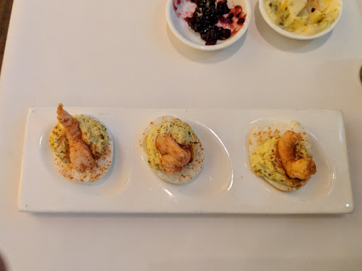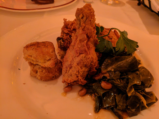 I really liked this place. I thought it was a very classy and had a nice relaxing atmosphere, the service was fantastic and the food was great! I loved the shrimp and grits that I got for a meal..the bacon in it was super crispy and the flavors were fantastic...the texture of the grits was really nice too and Im not usually a huge fan. The plates werent huge, heaping portions but of course you expect the dishes to be smaller at a place like this. I also loved the bread that came out with the appetizers. Its simple but also nice when you get something different as a compliment to your meal, like the garlic cornbread...very unique and tasty. The steak was really good as well. They had a nice cocktail list too, though I didnt think the drinks were necessarily amazing for 14$ each, but they werent bad either. The champagne was very good. Although, I guess when youre paying a lot of money, you expect there to be a good amount of alcohol in the drinks, and there definitely were so thats a good thing.