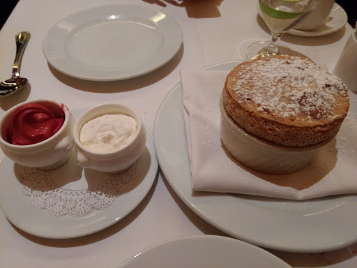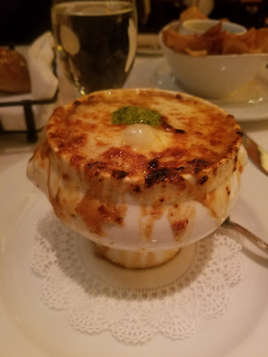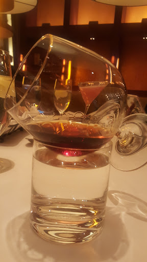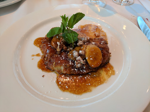 Service was excellent. My wife and I told the waitress we wanted to take our time and enjoy drinks apps etc. She was very accommodating. I asked for some recommendations and she was quick to suggest the duck confit and said the bourbon sauce that came with it was excellent. She was 100% right. The duck was great! I also asked for a wine recommendation. She was quick to describe the differences between the wines that would best compliment the dinner choices we made. My wife had the Pork Chop. She enjoyed that as well. If you like French Onion soup you will like what Bar Americain offers. The Vidalia Onions were sweet, the broth was delicious. We skipped desert and chose to walk around the Casino and pick up some desert at Ballos. Bar Americain had great service, very good food and dont be afraid to ask the wait staff for suggestions or information about the dishes. It made a difference in the meal.