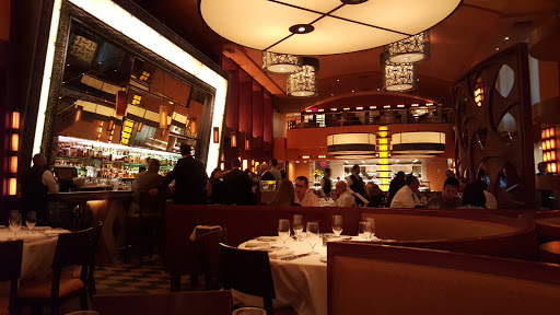 This place was surprisingly, just okay. The decor and the ambience inspired a sense of high class; befitting the area this place is situated in. The service was pretty good, just pretty good and so was the food. That was the most disappointing thing about the evening I guess I had it built in my head from watching all the Iron Chef shows Bobby Flay was in that the food would bestow upon you an out of this world experience. Sadly, however, that was not the case. I ordered the pork chop, described by the server to be tender and succulent and cooked to perfection. But alas, that was not the case, it was dry..DRY I say!!! A taste characteristic that I would expect to find from one of the street vendors just a few blocks away, but not at this place, please say it aint so?!! I dont remember what my cousin ordered, I guess the rest of the night was a blur after trying to stomach that sorry excuse for cuisine. I guess other than that, the our evening was okay, but dont get your hopes up coming to this place. Its over-rated and hyped up by all the tourists that flock to Bobbys establishments. Im sure hes an excellent chef, capable of dishing up some existential dishes. However, the restaurants that bear his name dont do his talents any justice.