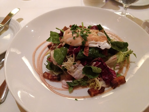 I had high hopes for Bar Americain. I walked in and took a seat at the bar. My server brought me a menu for drinks and I ordered a Manhattan. Impressively the bar tender knew enough to ask if I prefer lemon twist or cherry with my drink. (Cherry for those of you who care). On the servers recommendation I had a asparagus chopped salad. It was fresh and crisp. Uniformly diced peaces of cheese and ham were in the salad. There was a mustard vinaigrette that was very impressive. I did notice that there was a bit too much dressing on the salad, I like mine very light some may like it this way. If you prefer it lighter then ask for it on the side. After that I tried the duck breast. I am not a huge fan of duck, but this was well cooked and came apart very easily. For those who enjoy duck this may be right up your ally. Moving on to dessert I tried their germen chocolate cake. The cake didnt move me. It wasnt as moist as I would expect and was so dense as to make it unappetizing. This along with what was a laughably small espresso was a let down to end the meal with. I have no doubt that the level of service and food at Bar Americain is typically of a much higher level. I give 3 stars for a dining experience that was a let down but one that I have high hopes for next time I try it.
