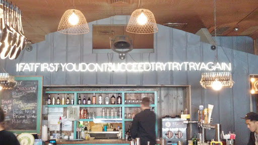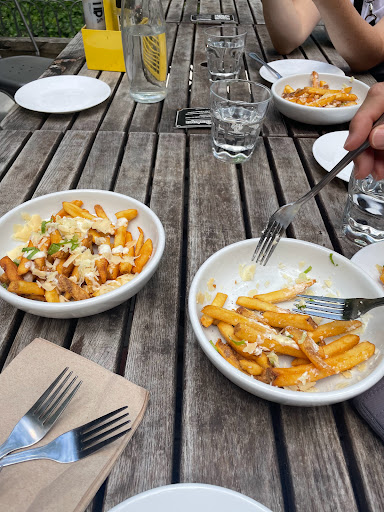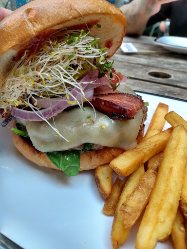 This place was just fine. While I appreciated the large and creative menu, I found our burger to be less exciting than I expected. My bigger problem was dealing with my moms frustrations. Wed been doing quite a bit of walking that day and arrive not just hungry, but thirsty. The waitress immediately brought a bottle of water to the table. Well, we finished that by the time we were only a bite or two into our meal. Then our waitress seemed to disappear. We eventually managed to get someone elses attention and asked her for more water. She was friendly and assured us shed bring one. Nope. We eventually saw our waitress, but couldnt manage to catch her attention. Again, more waiting. Another five minutes, no sign of our waitress. So we went up to the bar and asked. Our bar tender immediately took care of it. Im just not sure that only decent food and really lacking service are worth the prices they charge. Maybe another location is better?