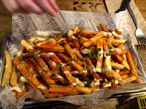 I visit NY frequently and Im always looking for a good place to eat. My super close friend is Vegan (I am not) so it can be pretty tricky to find a place that satisfies us both. We came across Bareburger and it was absolutely amazing! My friend had the black bean veggie burger and I had a basic cheeseburger-- both came with TONS of fresh sweet potato fries! The service was OK in my opinion ( a bit slower than I am used too.) However the ambiance was laid back and rustic chic, something we both enjoyed after 4 hrs. on the road. I would definitely visit again. Its a perfect place for both vegan-friends and non-vegans!