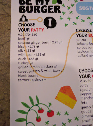 I love getting burgers that are weird, unique and grass-fed. I ordered an elk burger and was excited to try it out. Upon receiving the burger it looked like a burger from heaven... My mouth was watering. Sinking my teeth into it, I didnt notice any flavor, and I was heartbroken. All the anticipation leading up to a delicious grass-fed burger had vanished almost immediately. For $16 BEFORE tip, I received a burger with a side of fries. The price is fairly aggressive for what it was. If it was a few dollars cheaper I would maybe have given it a higher rating even though it would lack the flavor.
