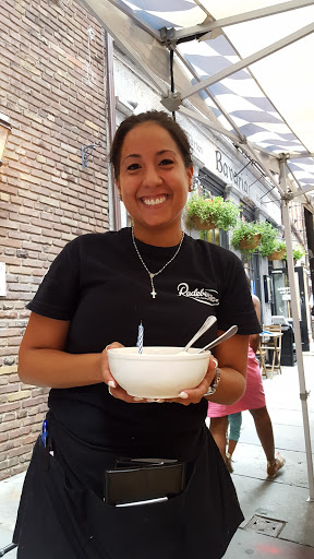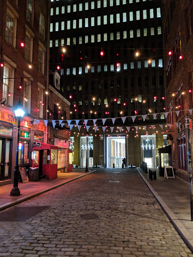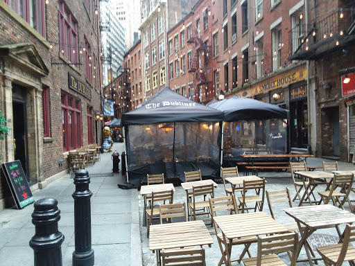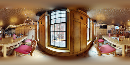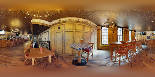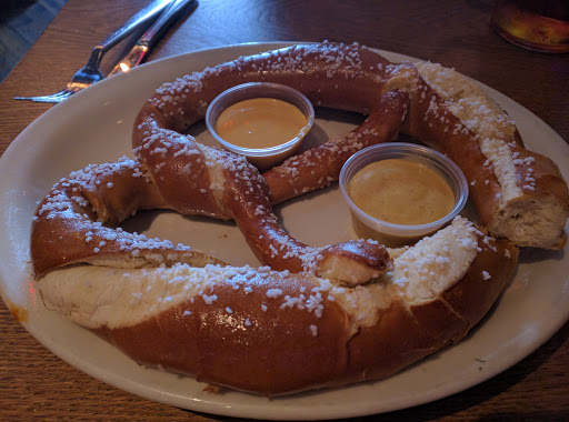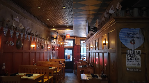 A new German Restaurant, opening just a few months ago. It is a nice, new space, with a large, high ceilinged bar area downstairs as well as an upstairs area. The interior is beautiful-- elegant glass lights hang over the bar, there are wooden tables and wooden paneling on the walls.I was informed that the bar was imported from Germany, where it was made. Waiters and Waitresses wear the traditional lederhosen and dirndls. The menu is mostly German including wursts, wiener schnitzel, and spaetzel. There are also some standard pub staples like french fries and burgers. The pretzel is enormous and delicious. It was was very fresh with a nice, slightly buttered crust. It came with mustard, a cheese sauce, and some cornichons. I did not have beer, but there appeared to be at least 10 beers on tap plus about 10 more bottled beers on the menu, all of which were German. A nice, new addition to Stone Street.