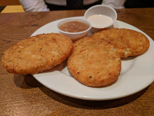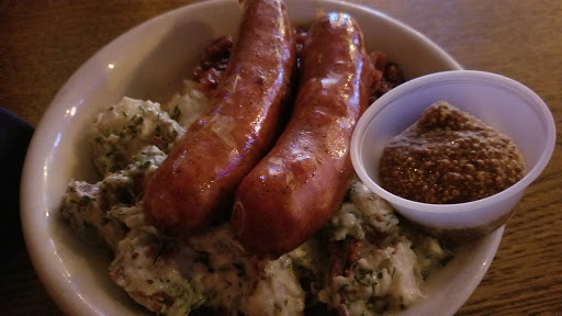 The sausages were excellent however, the potatoes lacked seasoning. Asked for the burger to be cooked med rare, came out well done and dry as cardboard. Potato pancakes were decent, nothing special. Waitress was nice and full of energy, the hostess was rude.