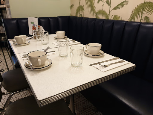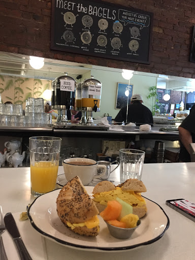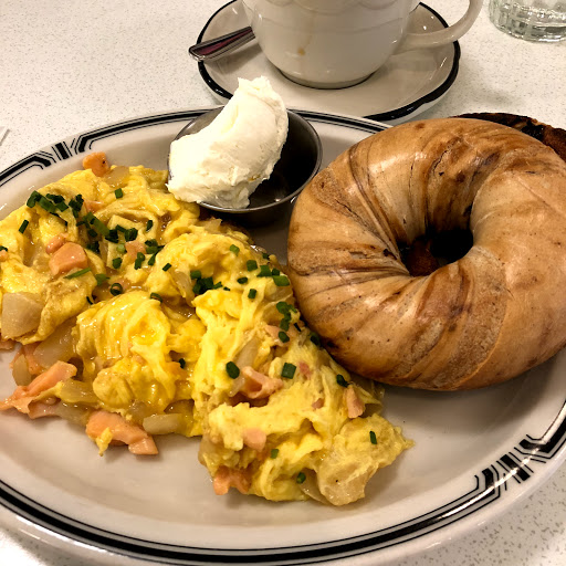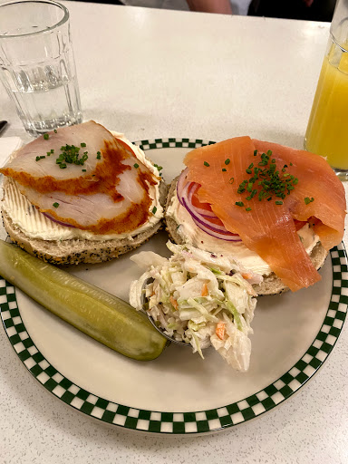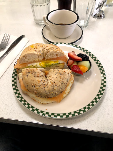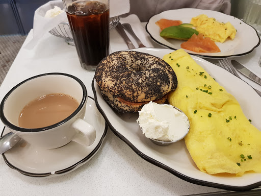 Great comfort food in a retro glamorous diner. Full on everything bagels with lox and cream cheese and fruit and pickles and coffee. Something of a tight fit on space, but helps with the inviting atmosphere and cordial service. Food was fresh and tasty.
