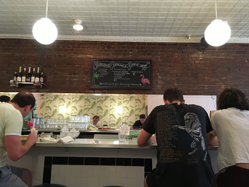 Uncomfortable small space to sit at counters, service is getting messy when there are more customers coming in. Food is good but pricey.