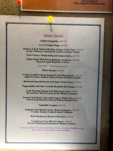 Been going here on and off for nearly 20 years. The food is always exceptional and well priced. The staff is super attentive without hovering, and although the seating is tight, the patrons are generally regulars who understand personal space. Highly recommended. Ive had the duck breast many times, but believe you cant go wrong with any dish. Most recently, one of our dishes came out wrong. This never happened before but the staff and owner were so apologetic and were willing to do anything to make things right. We will continue to go here when were in the area for the next 20 years.